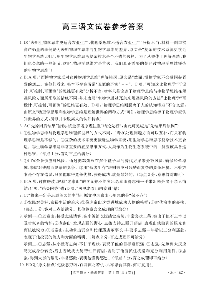 辽宁省2024届金太阳高三上学期开学摸底考试(24-18C)语文答案