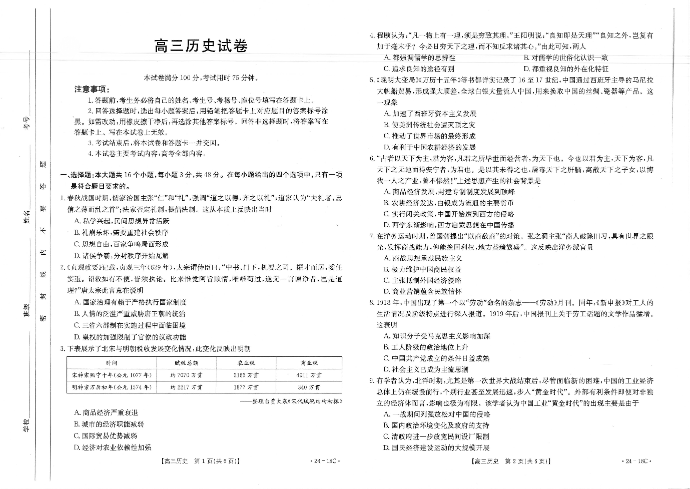 辽宁省2024届金太阳高三上学期开学摸底考试(24-18C)历史