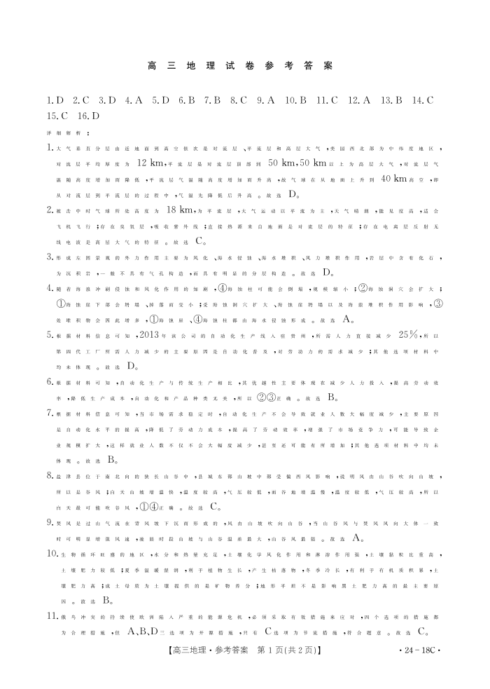辽宁省2024届金太阳高三上学期开学摸底考试(24-18C)地理答案