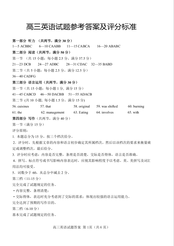 山东省泰安肥城市2024届高三上学期9月阶段测试英语答案