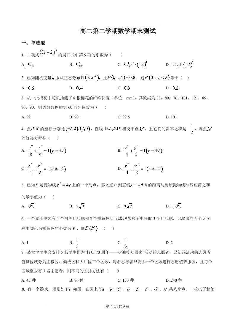 高二数学(原卷版)--海南省海南中学2024-2025学年高二下学期7月期末