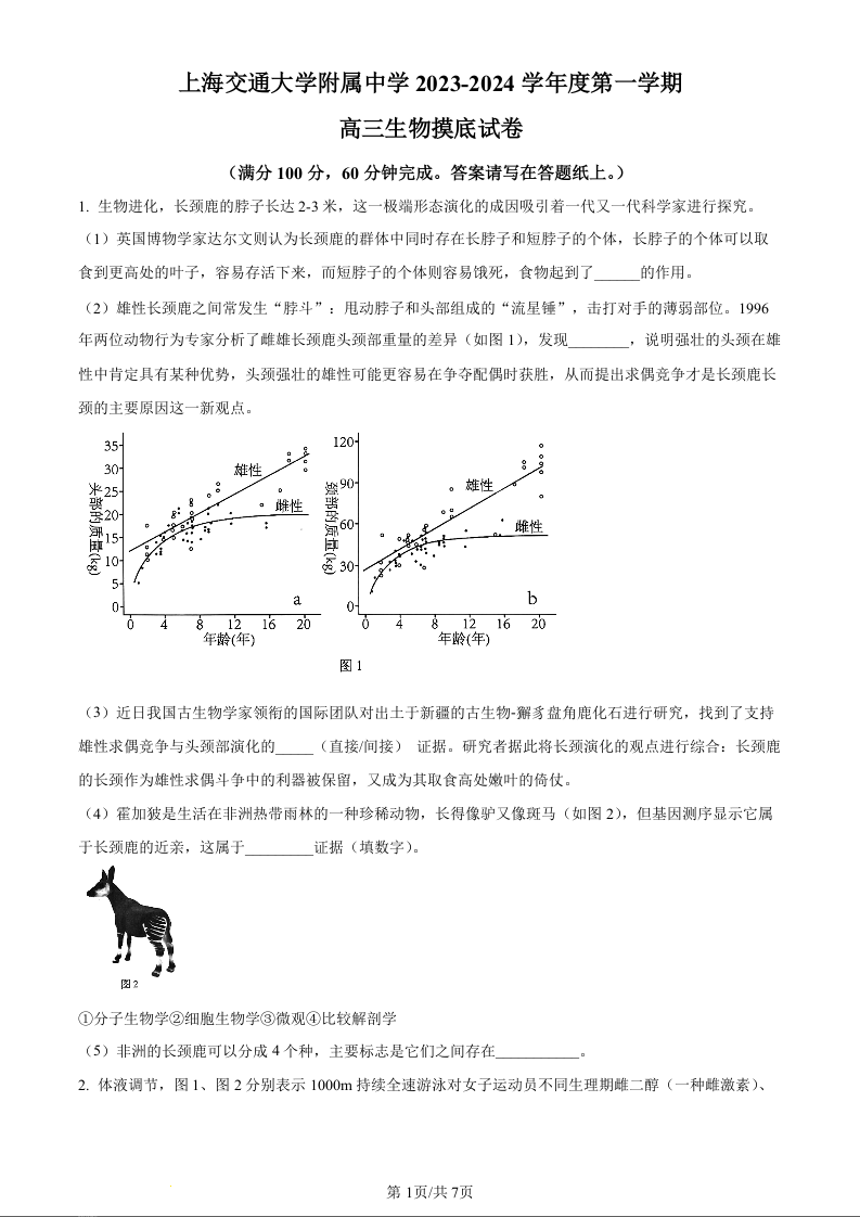 上海市上海交通大学附属中学2024届高三上学期摸底考试生物(原卷版)