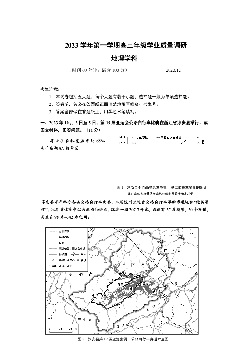 上海市闵行区2024届高三上学期学业质量调研试题(一模)地理+答案