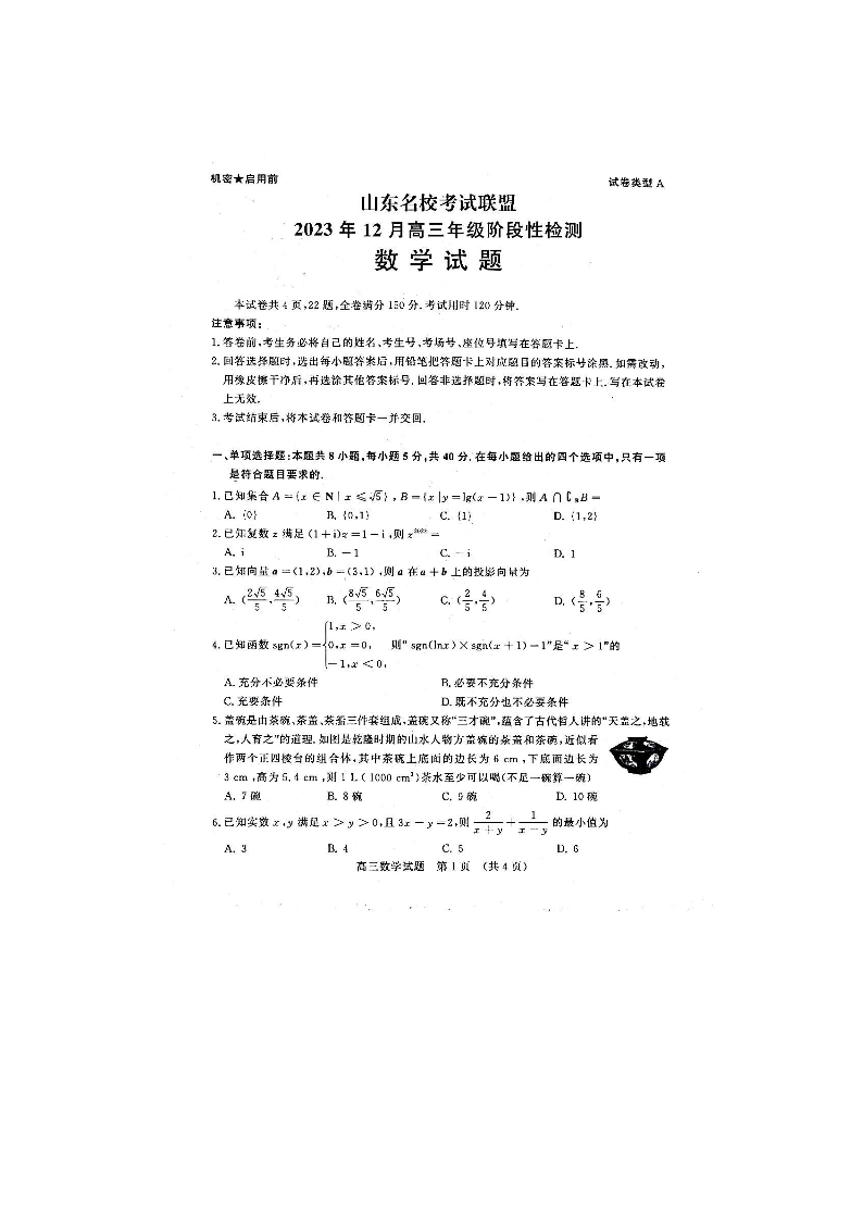 山东省名校联盟2024届高三上学期12月阶段性测试数学