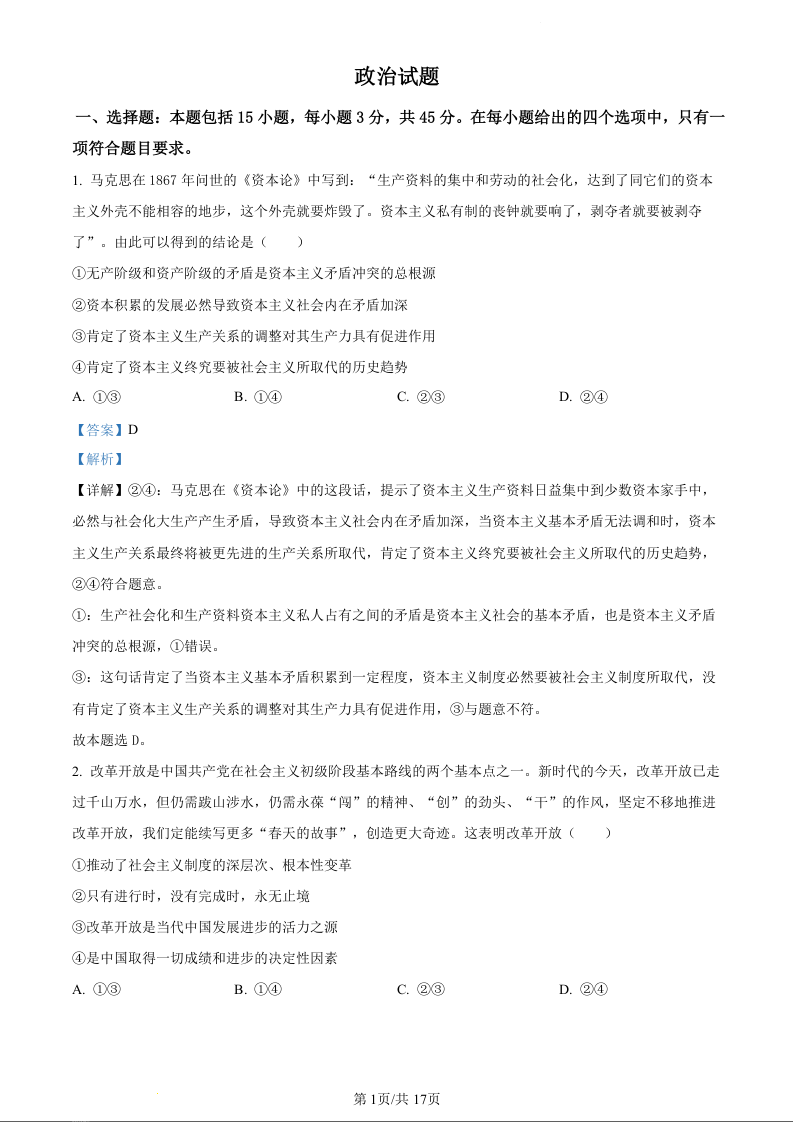 山东省济宁市第一中学2024届高三上学期12月月考政治(精品解析版)