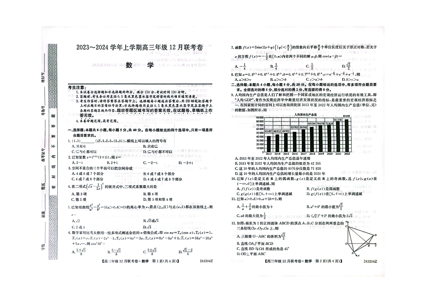 辽宁省朝阳市建平县2024届高三上学期12月联考数学