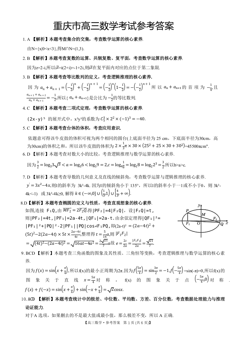 重庆好教育联盟2024届高三金太阳9月开学联考数学答案