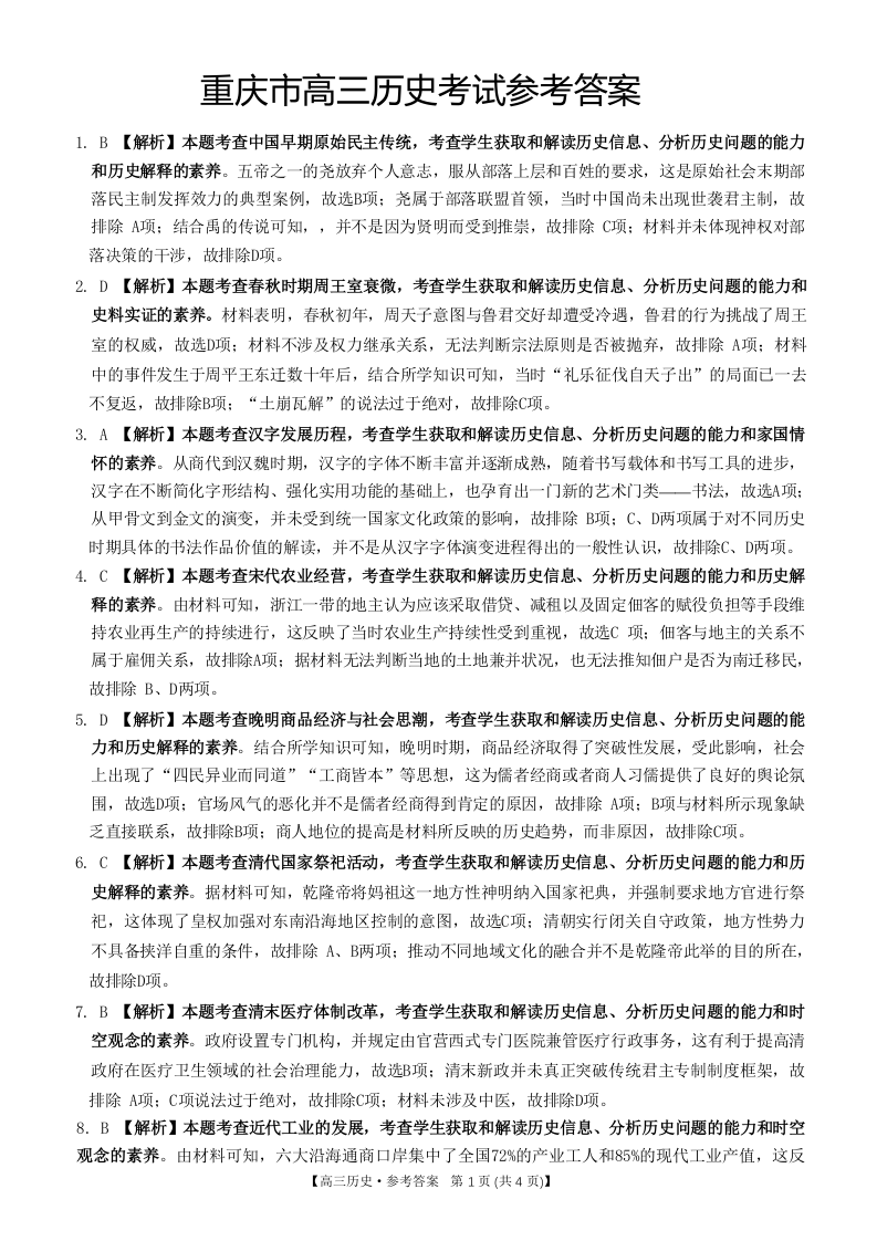 重庆好教育联盟2024届高三金太阳9月开学联考历史答案