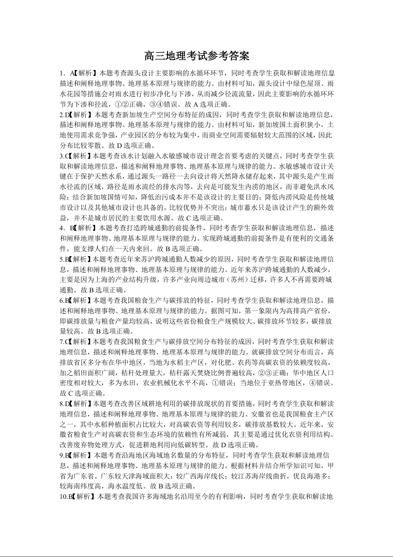 重庆好教育联盟2024届高三金太阳9月开学联考地理答案