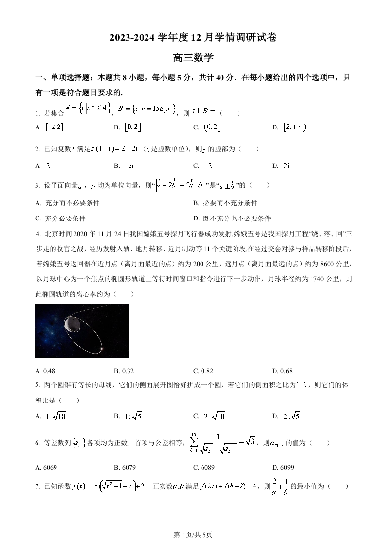 江苏省无锡市四校2024届高三上学期12月学情调研试卷数学(原卷版)