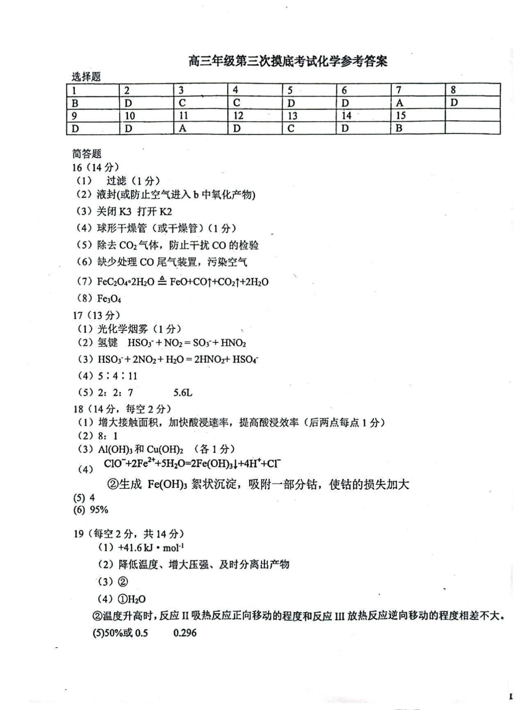 吉林省东北师范大学附属中学2024届高三上学期第三次摸底化学答案