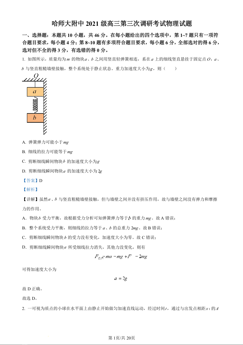 黑龙江省哈尔滨师范大学附属中学2024届高三上学期第三次调研考试(11月期中)物理(精品解析版)