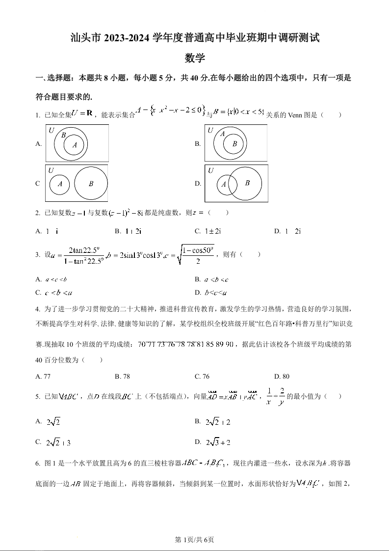 广东省汕头市2024届高三上学期12月期中考试数学(原卷版)