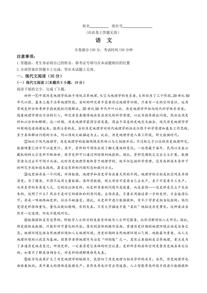 安徽省皖江名校联盟2024届高三上学期12月月考语文+答案