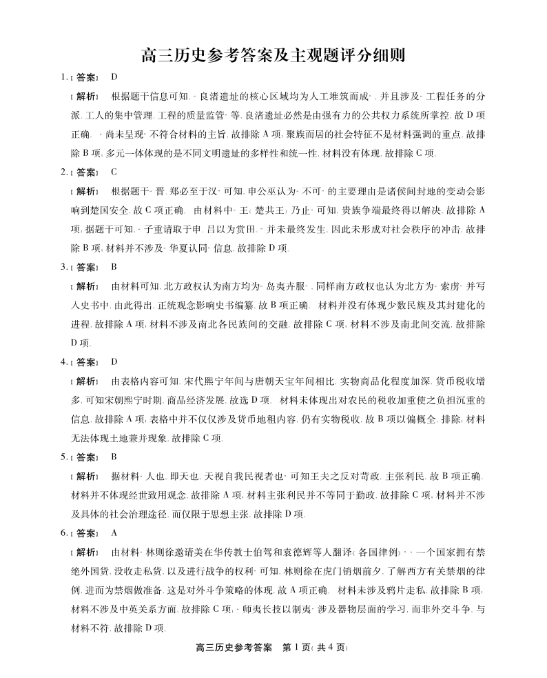 安徽省名校联盟2024届高三12月大联考历史答案