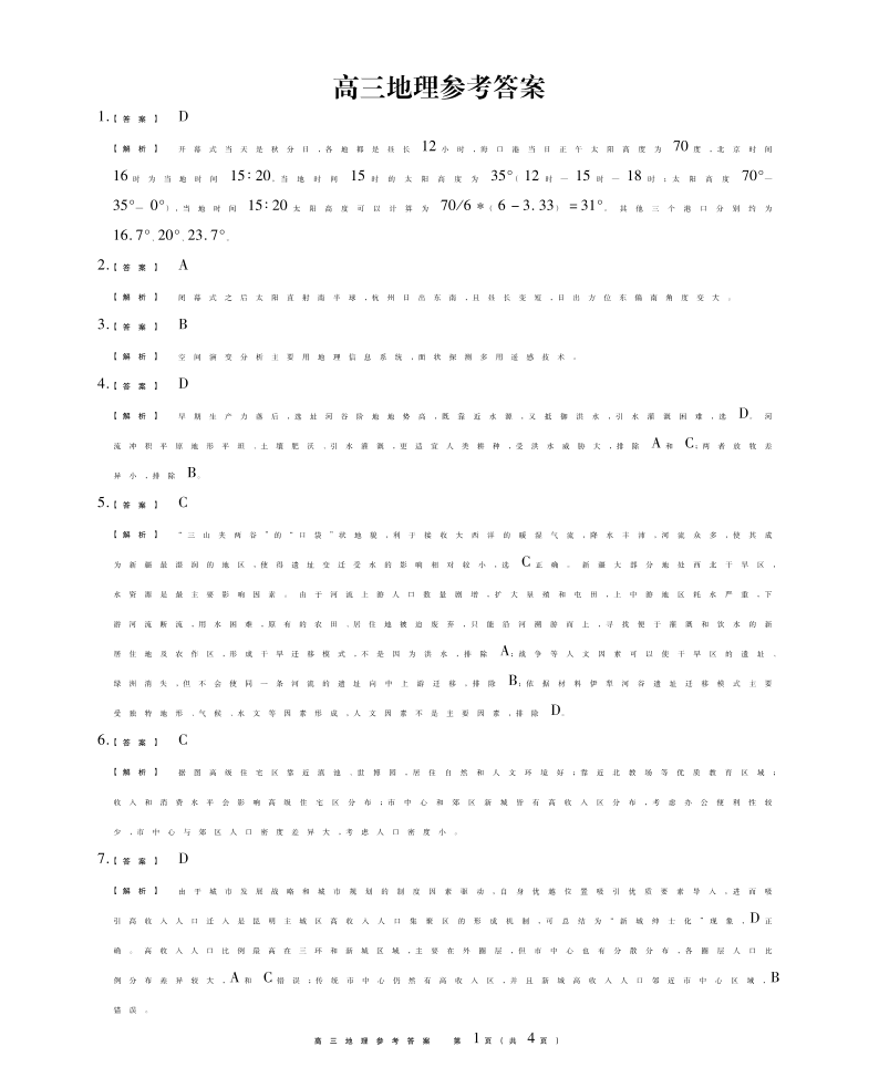 安徽省名校联盟2024届高三12月大联考地理答案