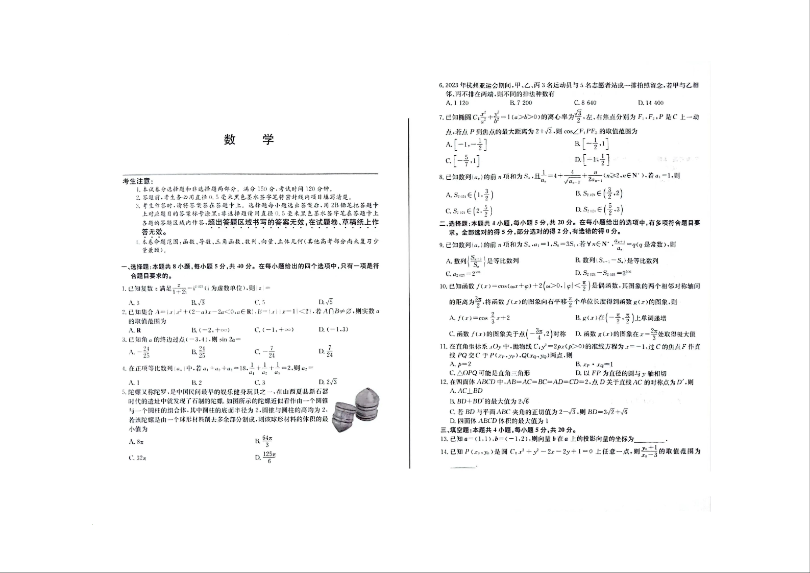 安徽省合肥市一中2024届高三上学期第二次教学质量检测数学
