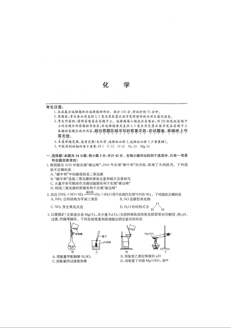 安徽省合肥市一中2024届高三上学期第二次教学质量检测化学