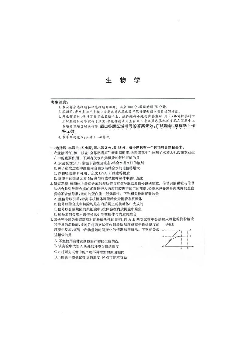安徽省合肥市一中2024届高三上学期第二次教学质量检测生物