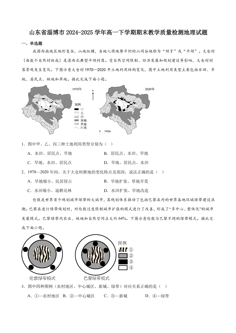 高一地理+答案--山东省淄博市2024-2025学年高一下学期期末考试