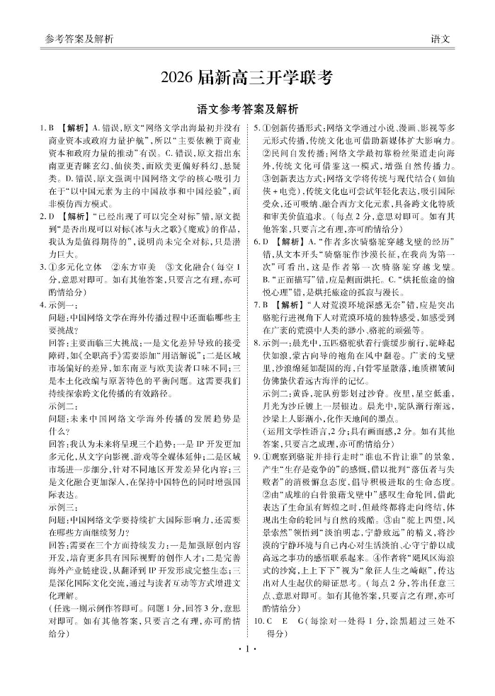 高三语文答案--广东衡水金卷2026届新高三开学联考