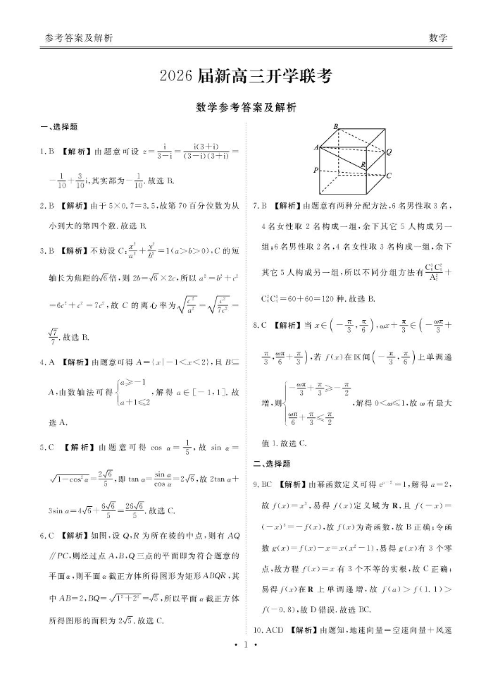 高三数学答案--广东衡水金卷2026届新高三开学联考