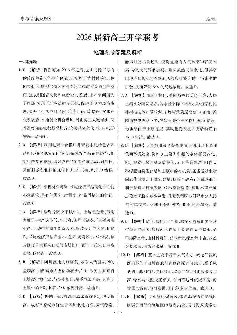 高三地理答案--广东衡水金卷2026届新高三开学联考