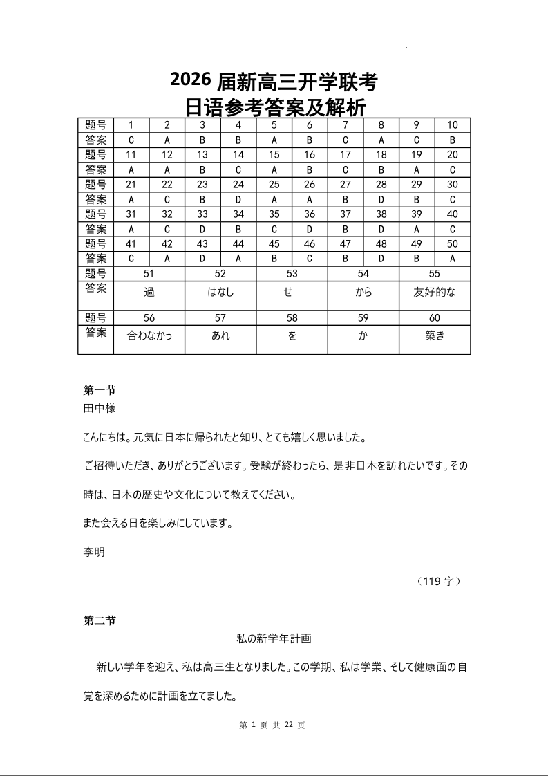 高三日语答案--广东衡水金卷2026届新高三开学联考