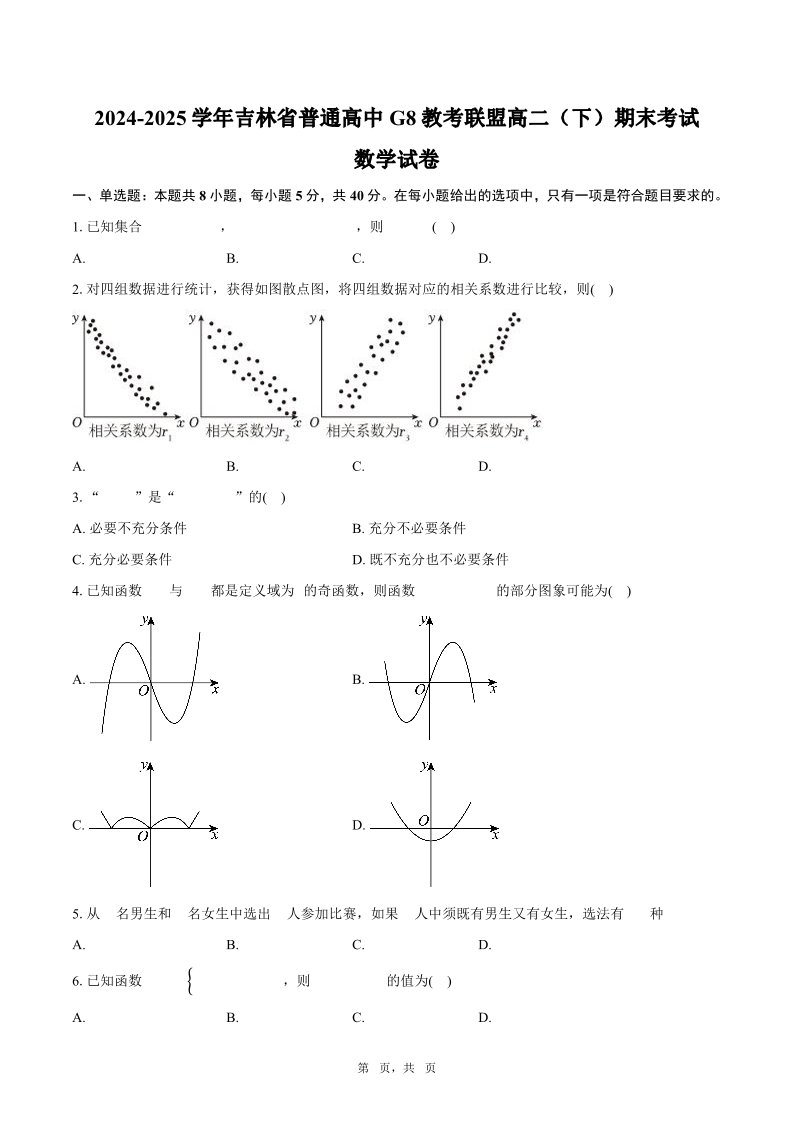 高二数学+答案--吉林省普通高中G8教考联盟2024-2025学年高二下学期7月期末考试