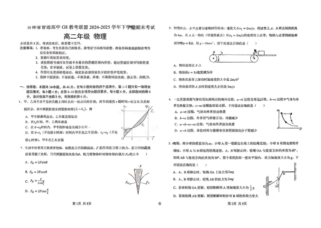 高二物理+答案--吉林省普通高中G8教考联盟2024-2025学年高二下学期7月期末考试