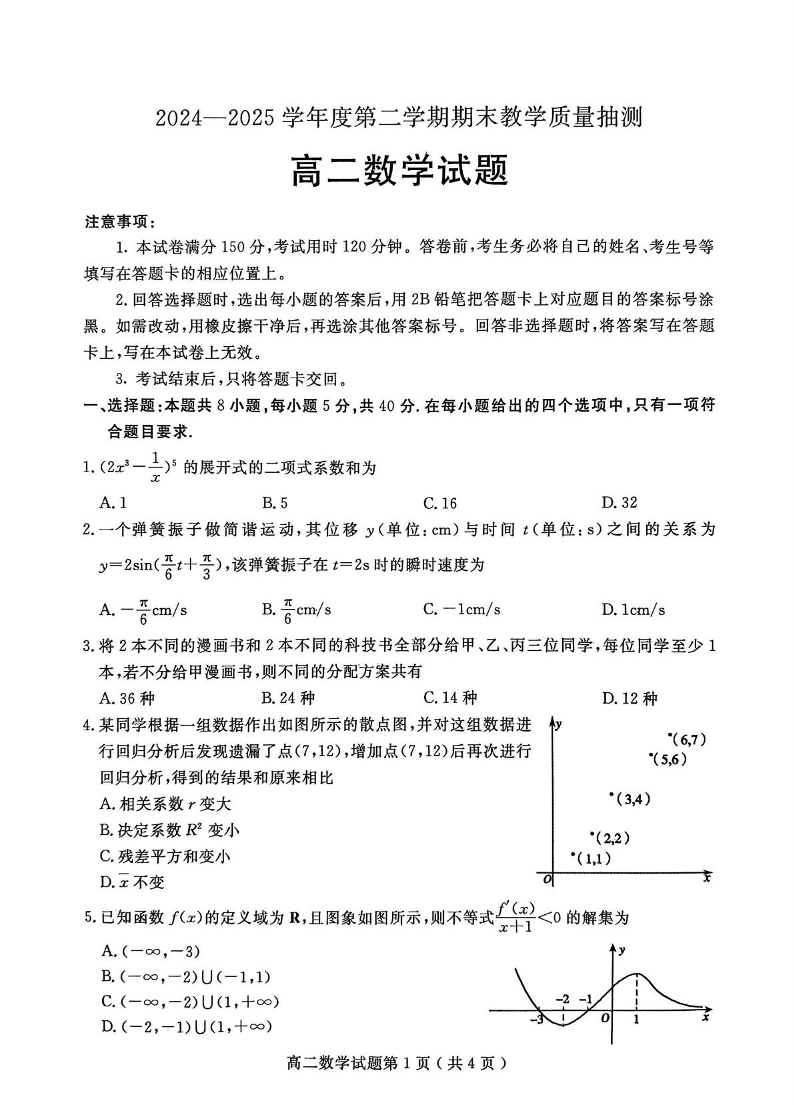 高二数学+答案--山东省聊城市2024-2025学年高二下学期期末考试