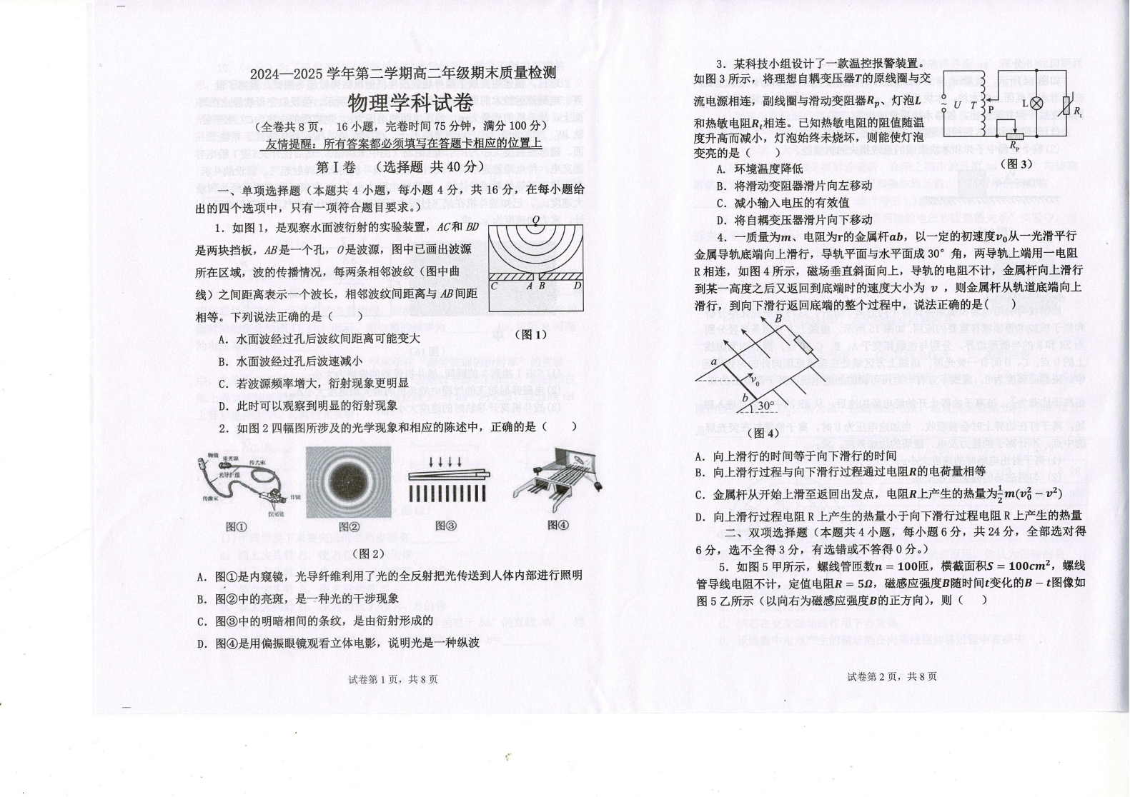 高二物理--福建省福州市福清市2024-2025学年高二下学期期末质量检测