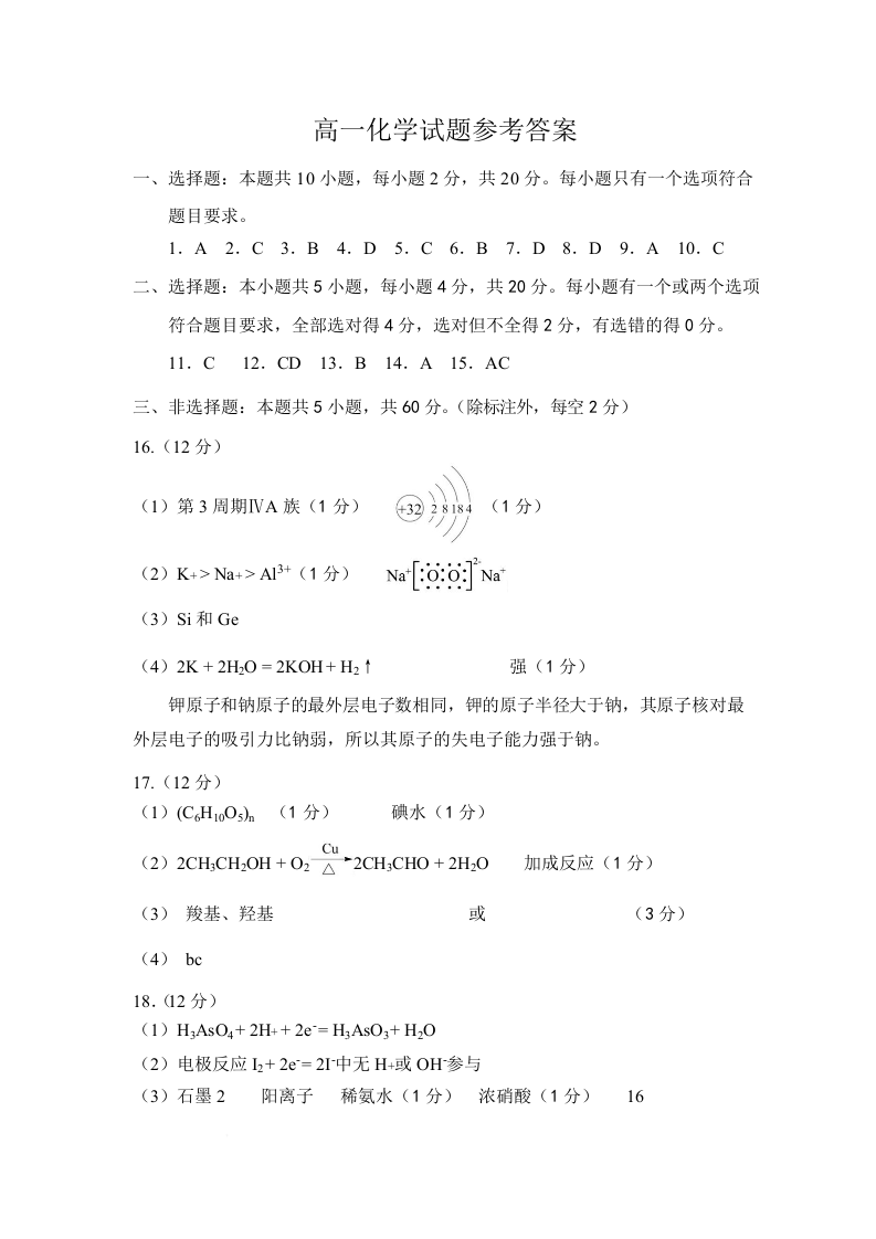 高一化学答案--山东省菏泽市2024-2025学年高一下学期期末考试