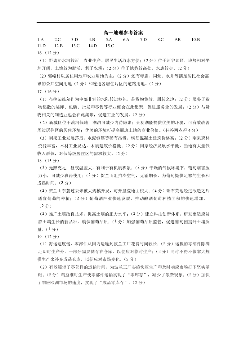 高一地理答案--山东省菏泽市2024-2025学年高一下学期期末考试