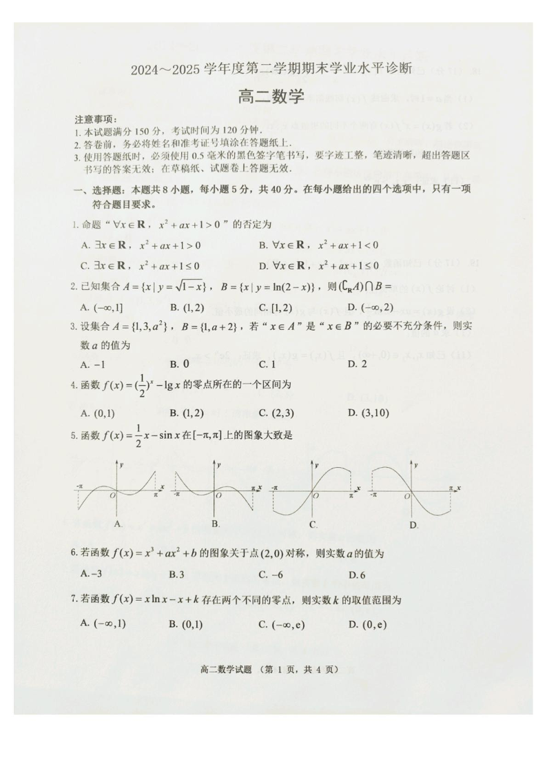 高二数学+答案--山东省烟台市2024-2025学年高二下学期期末