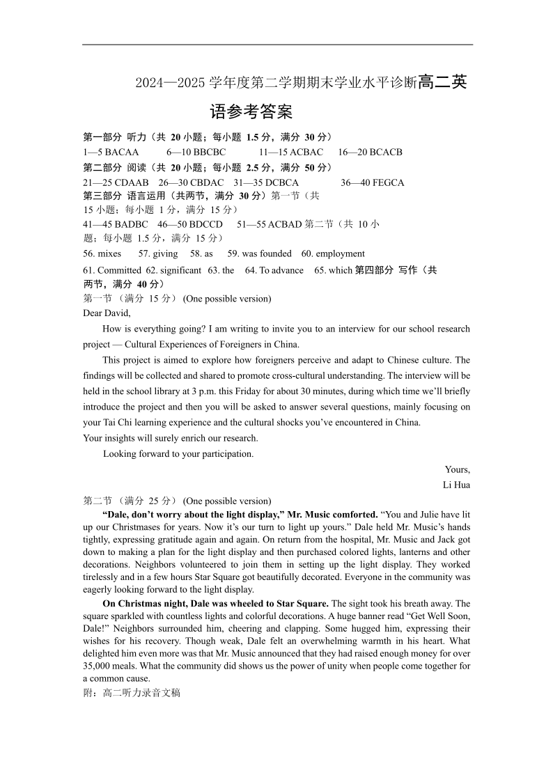 高二英语答案--山东省烟台市2024-2025学年高二下学期期末
