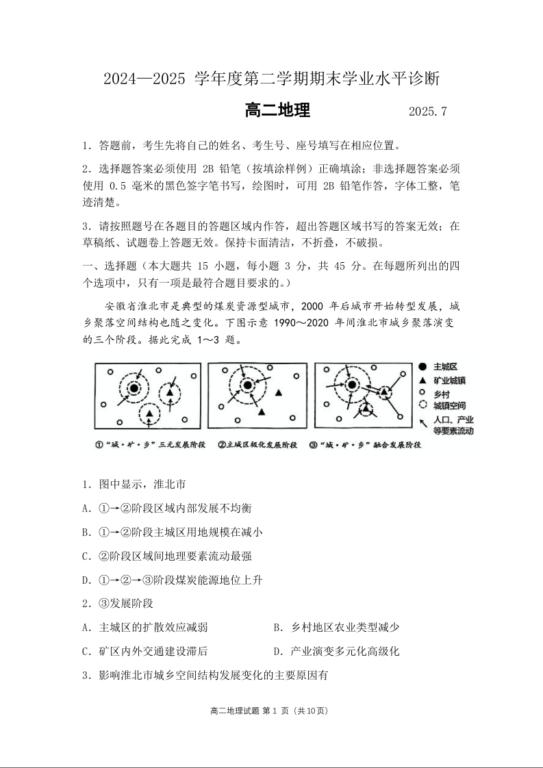 高二地理+答案--山东省烟台市2024-2025学年高二下学期期末