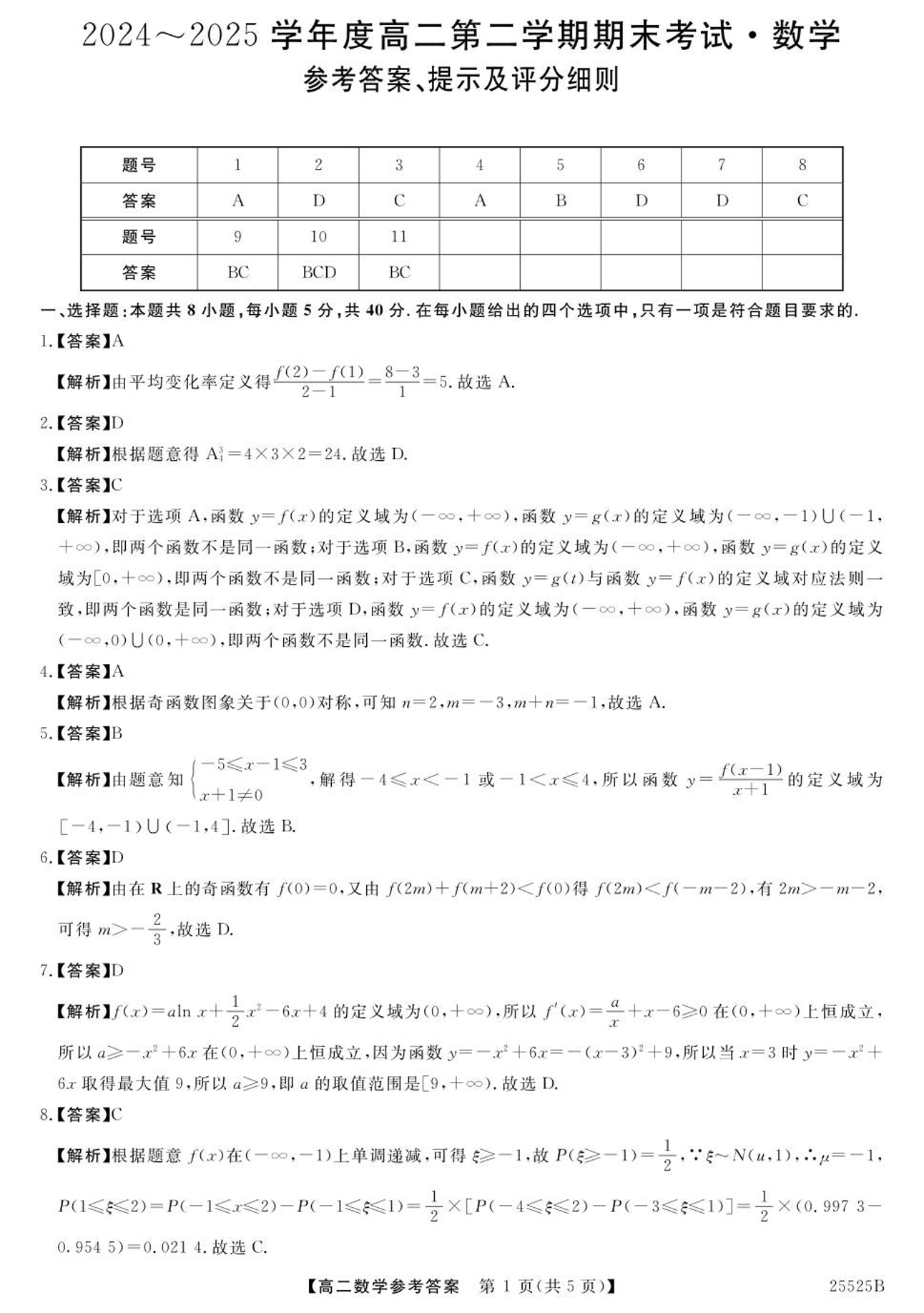 高二数学答案--吉林省吉林市永吉实验高级中学等校2024-2025学年高二下学期期末联考