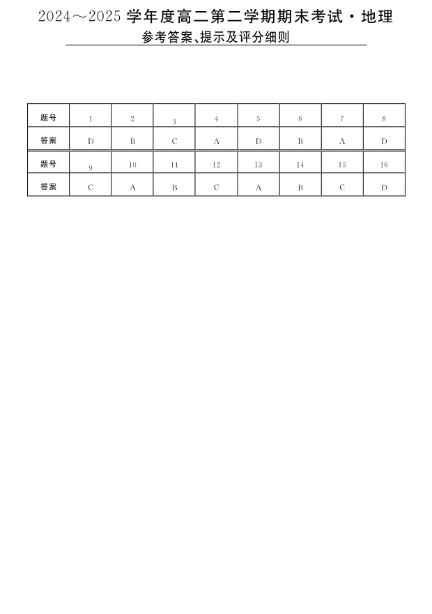 高二地理答案--吉林省吉林市永吉实验高级中学等校2024-2025学年高二下学期期末联考