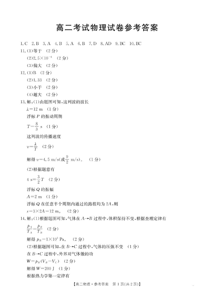 高二物理答案--辽宁省辽阳市2024-2025学年高二下学期期末考试