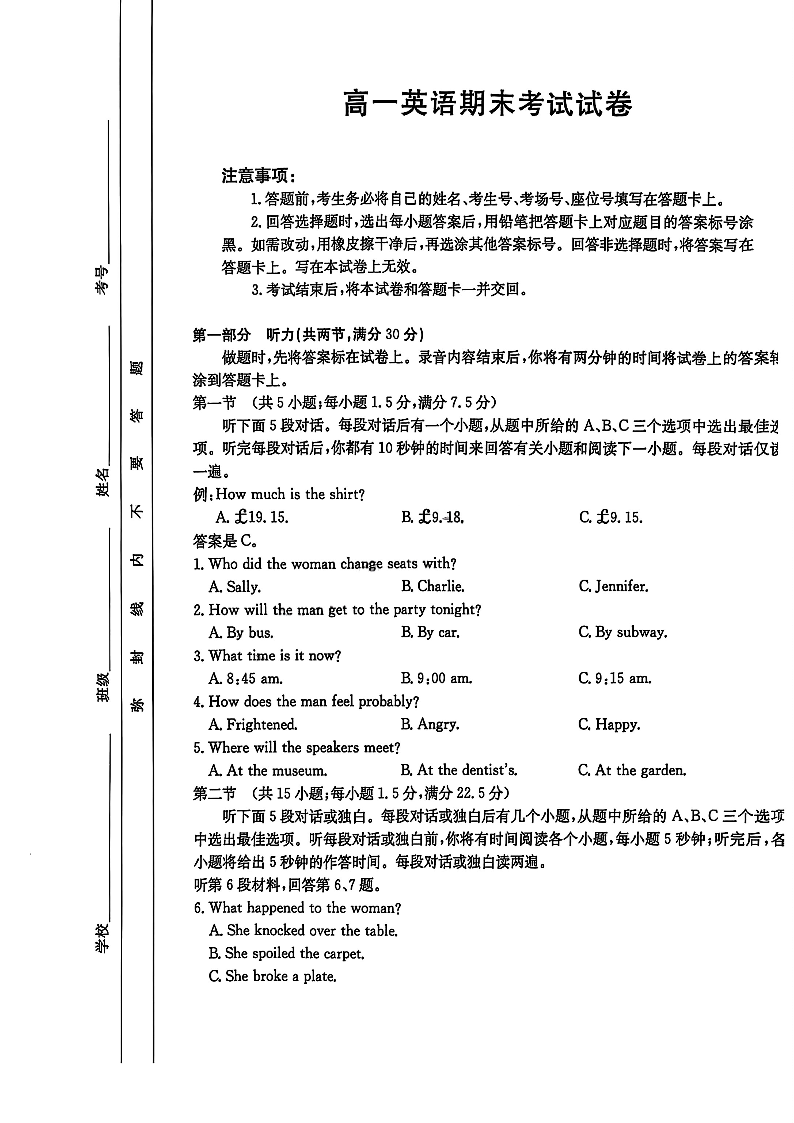 高一英语+答案--吉林省部分学校2024-2025学年高一下学期期末考试