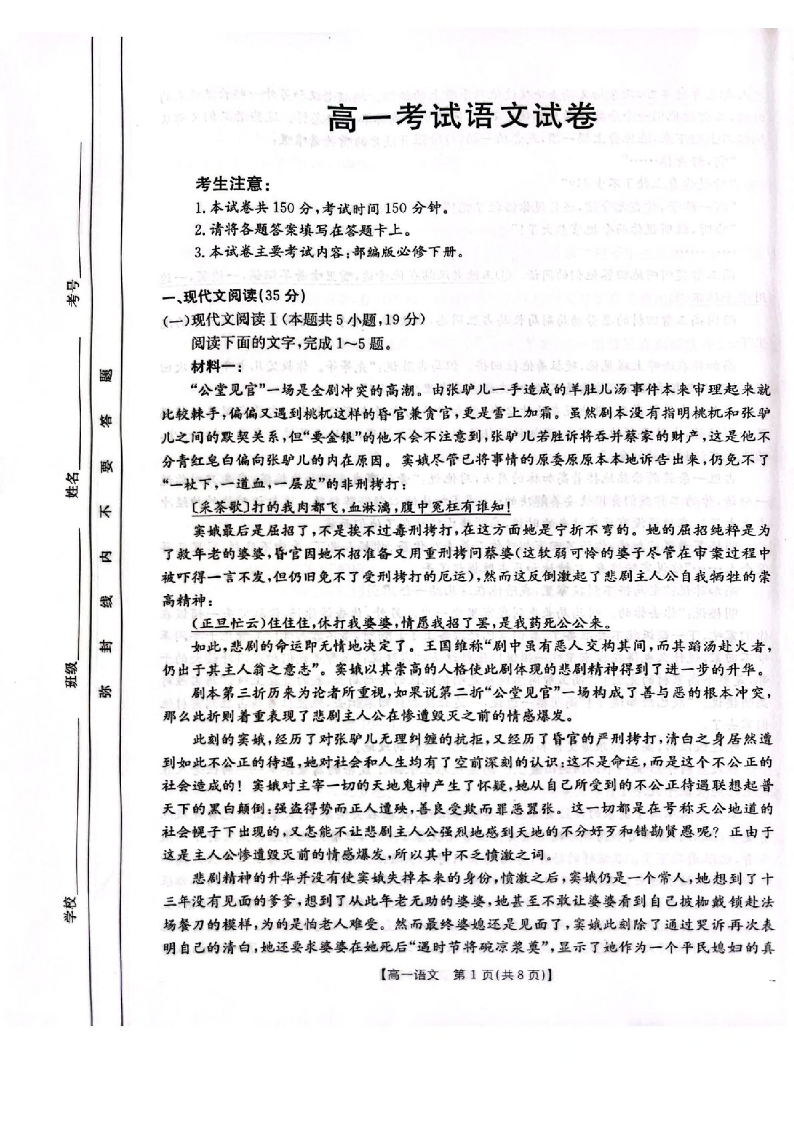 高二语文+答案--辽宁省辽阳市2024-2025学年高一下学期期末考试