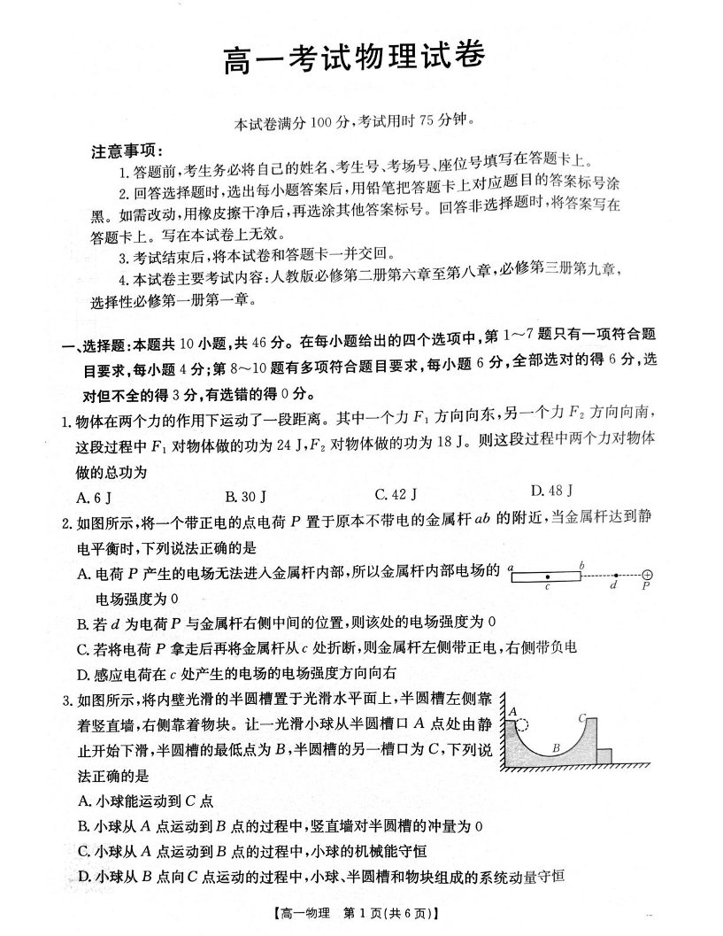 高二物理+答案--辽宁省辽阳市2024-2025学年高一下学期期末考试