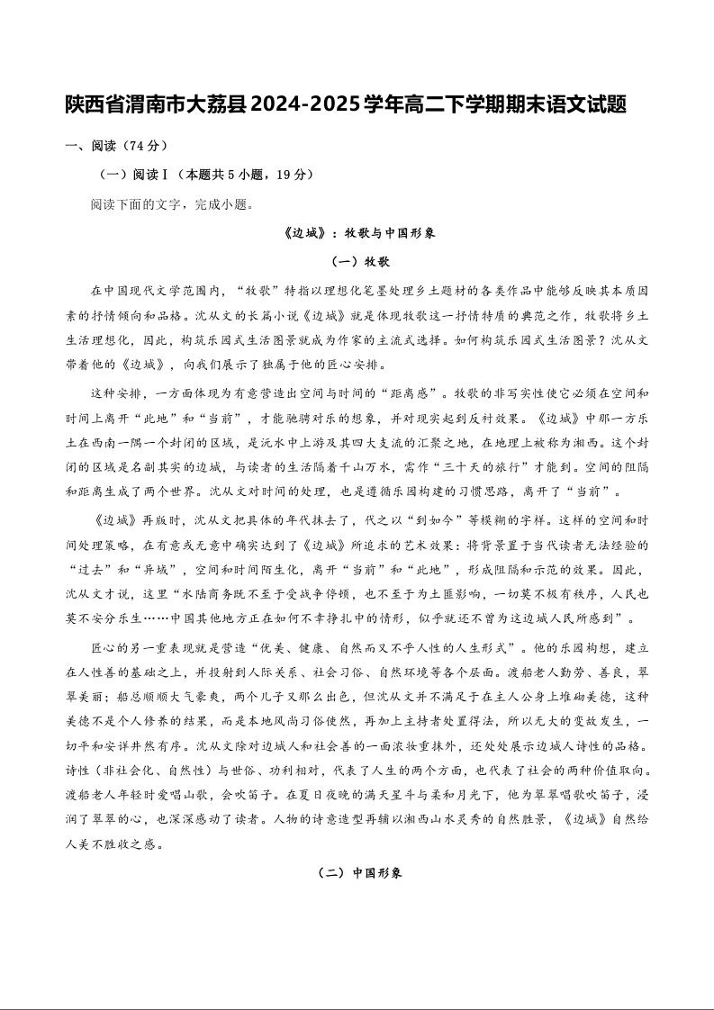 高二语文+答案--陕西省渭南市大荔县2024-2025学年高二下学期期末