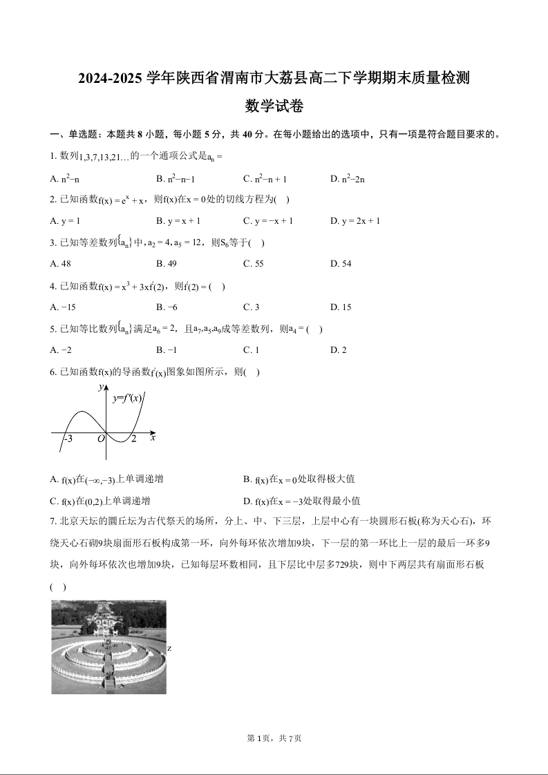 高二数学+答案--陕西省渭南市大荔县2024-2025学年高二下学期期末