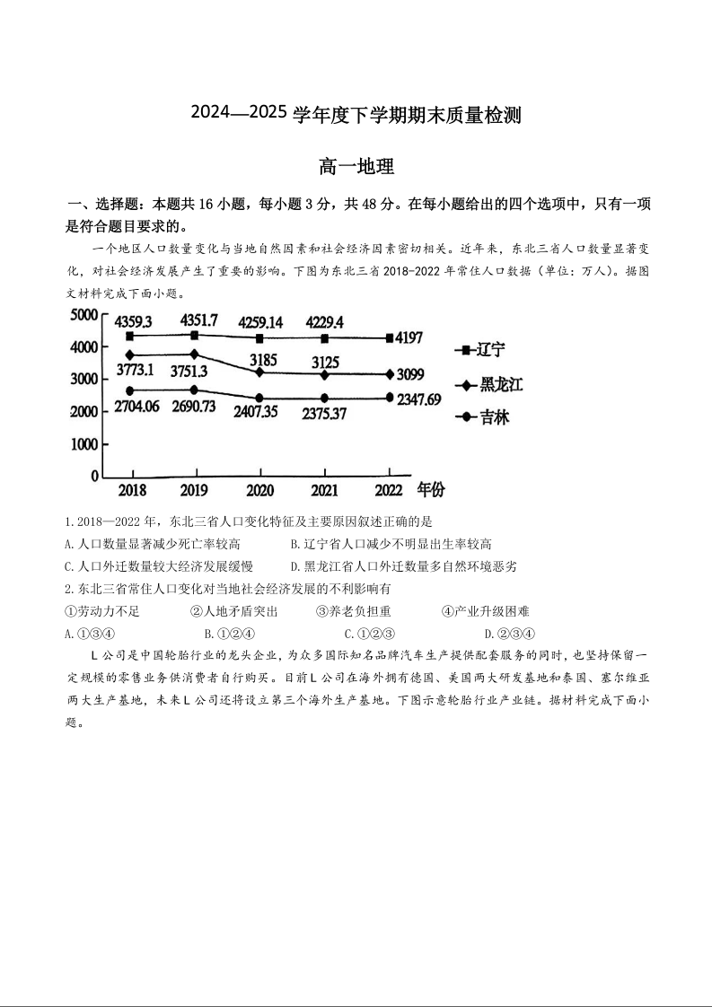 高一地理+答案--河南省三门峡市2024-2025学年高一下学期期末考试