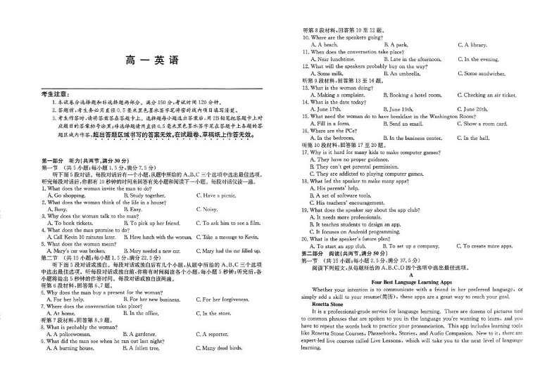 高一英语+答案--河北省保定市3+1联考2024-2025学年高一下学期7月期末考试