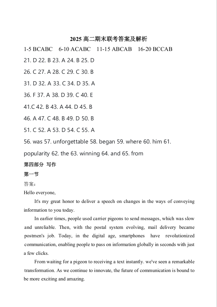 高二英语答案--福建省泉州市十校2024-2025学年高二下学期7月期末考试