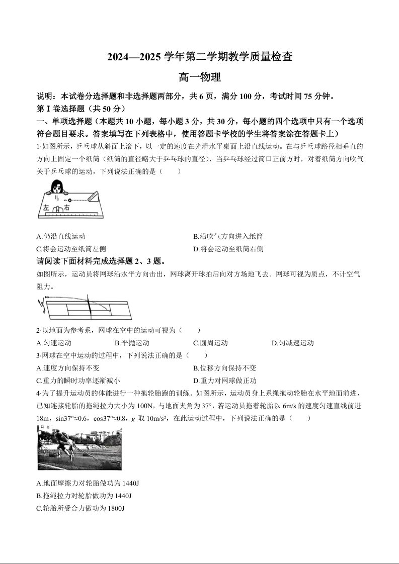 高一物理+答案--广东省东莞市2024-2025学年高一下学期期末考试