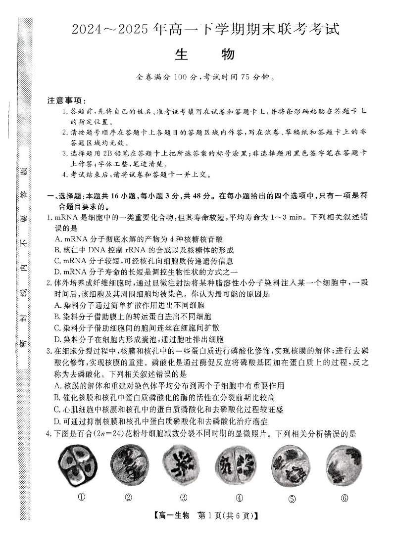 高一生物+答案--山西省临汾部分学校2024-2025学年高一下学期期末联考